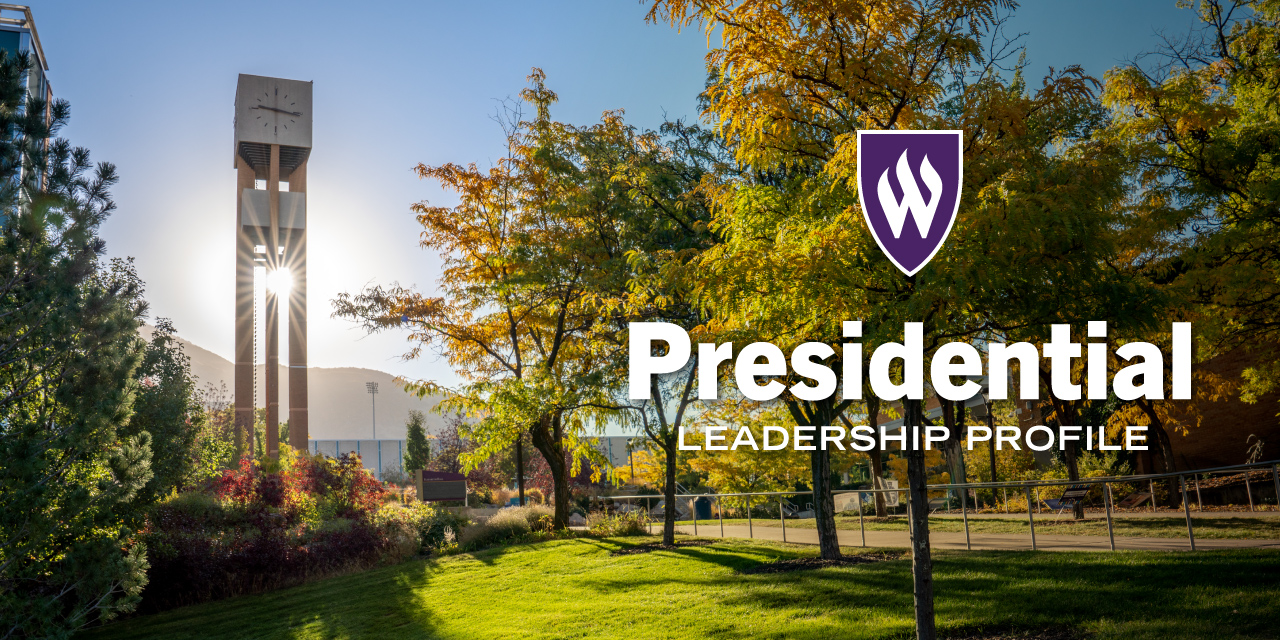Weber State University has officially launched the search for its next president. Shaped by the voices of students, faculty, staff, alumni, and community members, the WSU Presidential Search Committee has incorporated valuable feedback into the leadership profile. The official job posting is included in this leadership profile, which will guide the committee and the Utah Board of Higher Education in reviewing applicants and selecting WSU’s new leader. Please share nominations at wsupresidentialsearch@ushe.edu or provide additional feedback anonymously.