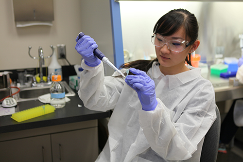 Wang developed her research under the mentorship of Matthew Nicholaou, an assistant professor of medical lab sciences in WSU’s Dr. Ezekiel R. Dumke College of Health Professions. Their work focuses on a new-gene editing tool called CRISPRs, or clustered regulatory interspaced short palindromic repeats, which are bacterial immune systems that can be used to edit a genome.